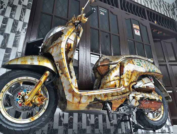 Ganteng Maksimal Honda Scoopy Ini Dibalut Dengan Airbrush Motif Karatan Gridoto Com